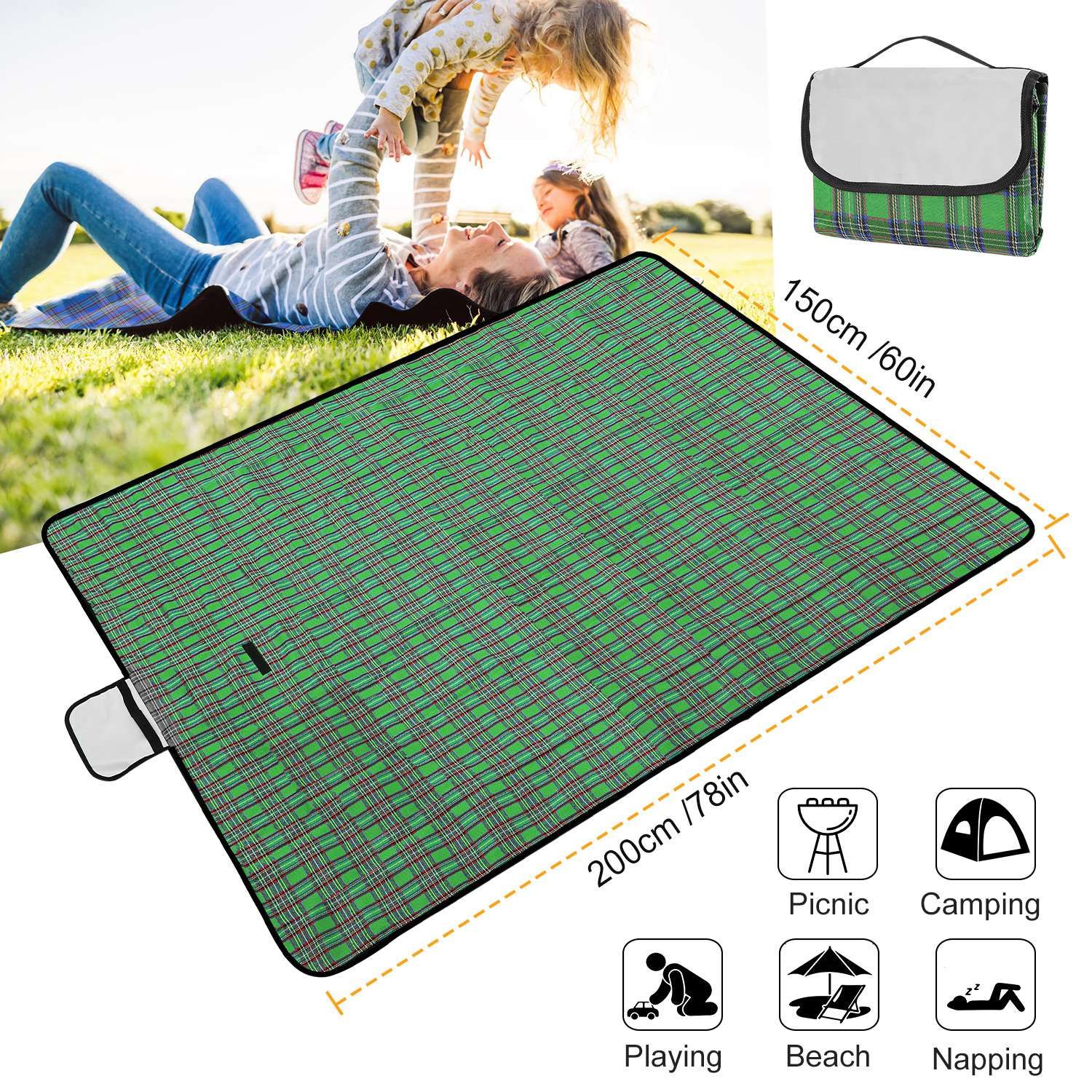 ** FOLDABLE & PORTABLE*:Folds out to 60" x 78" and folds to a compact 10.5" x 15". Built in a durable and convenient handle,weight only 1.2 pounds,portable and easily thrown in a backpack or travel bag. Perfect for picnic,camping,outing and beach travelling.