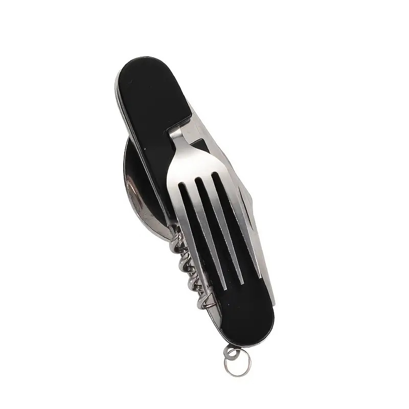 Stainless Steel 6-in-1 Multi-Tool Cutlery Set, Folding Pocket Knife with Fork, Spoon, Can Opener, Corkscrew, and Bottle Opener Stainless Steel 6-in-1 Multi-Tool Cutlery Set, Folding Pocket Knife with Fork, Spoon, Can Opener, Corkscrew, and Bottle Opener Stainless Steel 6-in-1 Multi-Tool Cutlery Set, Folding Pocket Knife with Fork, Spoon, Can Opener, Corkscrew, and Bottle Opener