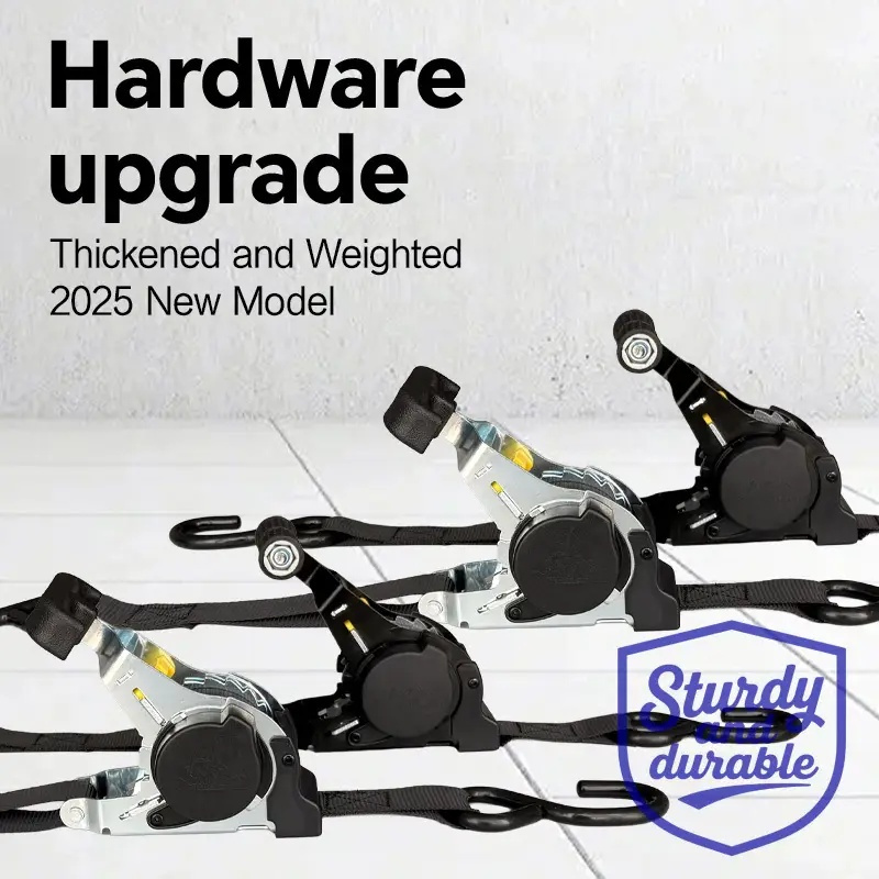 "Heavy Duty Auto Ratchet - One-Pull Tensioning Strap for Garage/Outdoor, "Heavy Duty Auto Ratchet - One-Pull Tensioning Strap for Garage/Outdoor, "Heavy Duty Auto Ratchet - One-Pull Tensioning Strap for Garage/Outdoor,